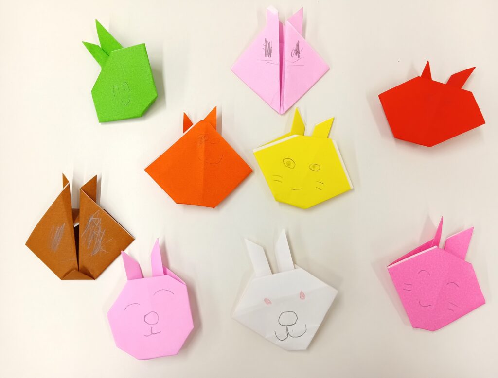 続いては、折り紙で《うさぎ》作りにチャレンジ! 先生の説明を聞きながら、一工程ずつ丁寧に折っていきます。 指先に力を込めて、しっかり折り目をつける姿はまるで職人さんのよう。