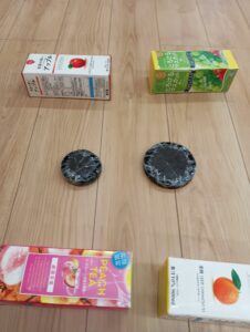 また、ある子が「ちゃいろ!」と驚いた表情で言ったのは、ピンクと黄色が重なってできた色。色の変化に目を輝かせていました。